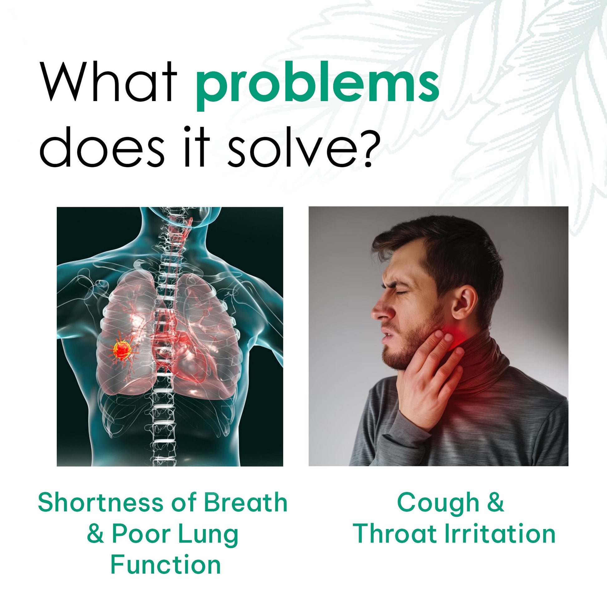 By targeting oxidative stress, promoting a balanced inflammatory response, and supporting immune function, this blend features thoughtfully selected herbs like Thyme, Mullein leaves, Peppermint, Eucalyptus, Licorice, Ginger, Turmeric, Oregano, Sage, Echinacea, Tulsi, Amla, Bettle leaves, and Stevia—designed for those who want to proactively care for their lungs, naturally.